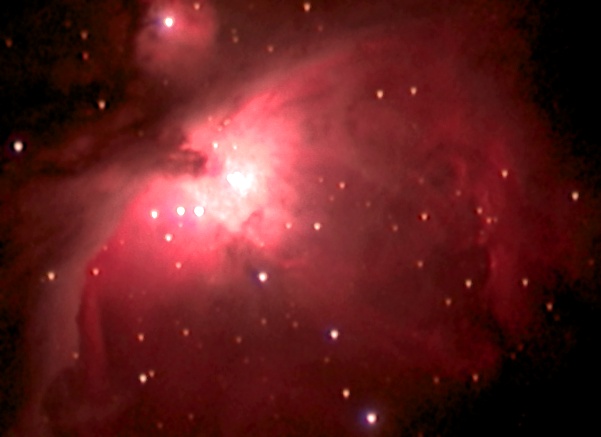 A second processing attempt, The histogram was adjusted to reduce the burn out in the central area and an unsharp mask used on the brighter noise free areas. Two passes of applying the L to the RGB image were used (LLRGB) . No colour correction was applied. The blue halo round the brightest stars, caused by the short focal length achromat are more pronounced, but overall I feel this version is an improvement